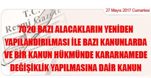 7020 Bazı Alacakların Yeniden Yapılandırılması ile Bazı Kanunlarda ve Bir Kanun Hükmünde Kararnamede Değişiklik Yapılmasına Dair Kanun