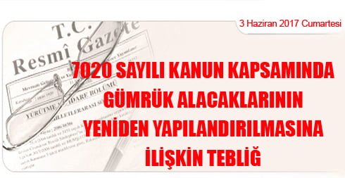 7020 Sayılı Kanun Kapsamında Gümrük Alacaklarının Yeniden Yapılandırılmasına İlişkin Tebliğ