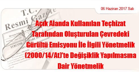 Açık Alanda Kullanılan Teçhizat Tarafından Oluşturulan Çevredeki Gürültü Emisyonu ile İlgili Yönetmelik (2000/14/AT)’te Değişiklik Yapılmasına Dair Yönetmelik