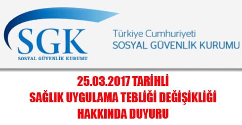 25.03.2017 Tarihli Sağlık Uygulama Tebliği Değişikliği Hakkında Duyuru