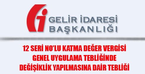 12 Seri No.lu Katma Değer Vergisi Genel Uygulama Tebliğinde Değişiklik Yapılmasına Dair Tebliği
