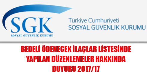 Bedeli Ödenecek İlaçlar Listesinde Yapılan Düzenlemeler Hakkında Duyuru 2017/17
