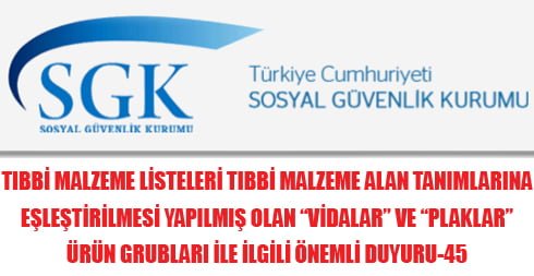 Tıbbi Malzeme Listeleri Tıbbi Malzeme Alan Tanımlarına Eşleştirilmesi Yapılmış Olan “Vidalar” Ve “Plaklar” Ürün Grubları İle İlgili Önemli Duyuru-45