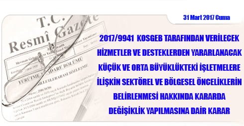 Kosgeb Tarafından Verilecek Hizmetler ve Desteklerden Yararlanacak KOBİ İlişkin Sektörel ve Bölgesel Önceliklerin Belirlenmesi Hakkında Kararda Değişiklik Yapılmasına Dair Karar