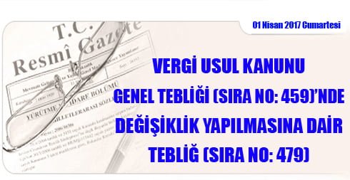 Vergi Usul Kanunu Genel Tebliği (Sıra No: 459)’nde Değişiklik Yapılmasına Dair Tebliğ (Sıra No: 479)