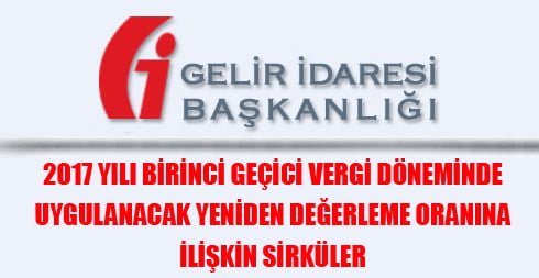 2017 Yılı Birinci Geçici Vergi Döneminde Uygulanacak Yeniden Değerleme Oranına İlişkin Sirküler Yayınlandı