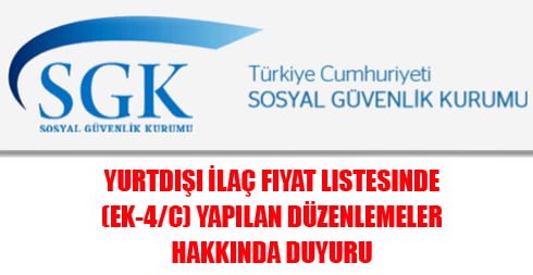Yurtdışı İlaç Fiyat Listesinde (Ek-4/C) Yapılan Düzenlemeler Hakkında Duyuru