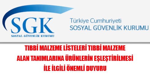 Tıbbi Malzeme Listeleri Tıbbi Malzeme Alan Tanımlarına Ürünlerin Eşleştirilmesi İle İlgili Önemli Duyuru