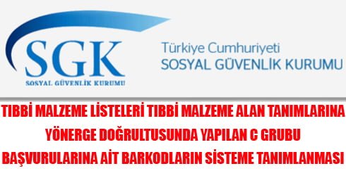 Tıbbi Malzeme Listeleri Tıbbi Malzeme Alan Tanımlarına Yönerge Doğrultusunda Yapılan C Grubu Başvurularına Ait Barkodların Sisteme Tanımlanması