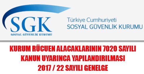 Kurum Rücuen Alacaklarının 7020 Sayılı Kanun Uyarınca Yapılandırılması 2017/22 Sayılı Genelge