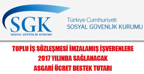 Toplu iş sözleşmesi imzalamış işverenlere 2017 yılında sağlanacak asgari ücret destek tutarı