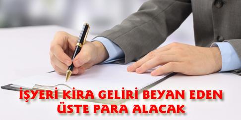 İşyeri Kira Geliri Beyan Eden Üste Para Alacak