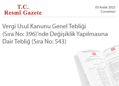 Vergi Usul Kanunu Genel Tebliği (Sıra No: 396)’nde Değişiklik Yapılmasına Dair Tebliğ (Sıra No: 543)
