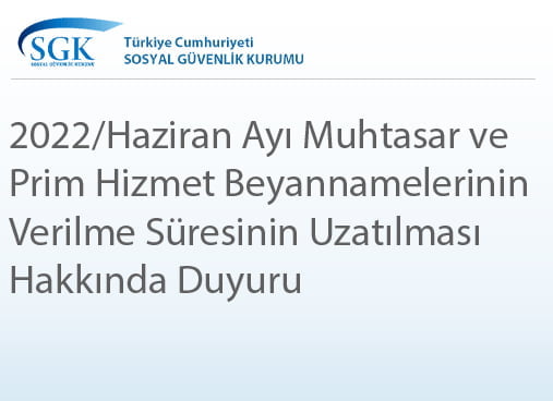2022/Haziran Ayı Muhtasar ve Prim Hizmet Beyannamelerinin Verilme Süresinin Uzatılması Hakkında Duyuru