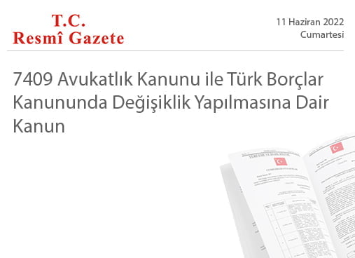 7409 Avukatlık Kanunu ile Türk Borçlar Kanununda Değişiklik Yapılmasına Dair Kanun