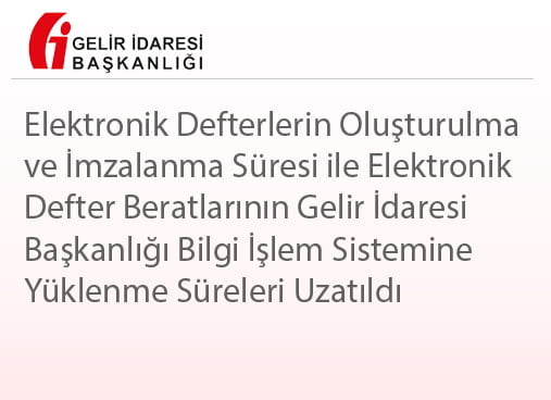 Elektronik Defterlerin Oluşturulma ve İmzalanma Süresi ile Elektronik Defter Beratlarının Gelir İdaresi Başkanlığı Bilgi İşlem Sistemine Yüklenme Süreleri Uzatıldı