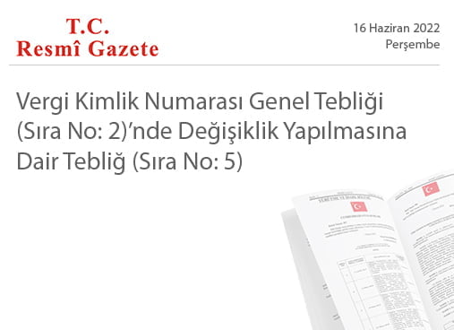 Vergi Kimlik Numarası Genel Tebliği (Sıra No: 2)’nde Değişiklik Yapılmasına Dair Tebliğ (Sıra No: 5)