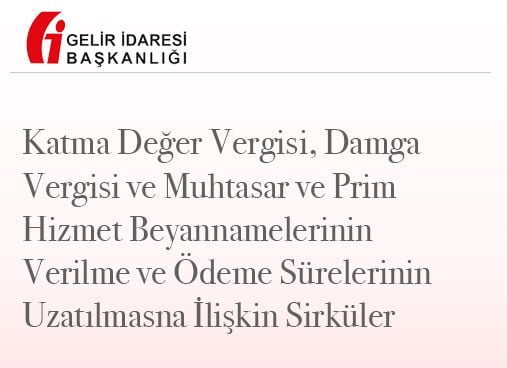 Katma Değer Vergisi, Damga Vergisi ve Muhtasar ve Prim Hizmet Beyannamelerinin Verilme ve Ödeme Sürelerinin Uzatılmasına İlişkin Sirküler