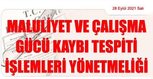 Maluliyet ve Çalışma Gücü Kaybı Tespiti İşlemleri Yönetmeliği