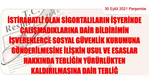 İstirahatli Olan Sigortalıların İşyerinde Çalışmadıklarına Dair Bildirimin İşverenlerce Sosyal Güvenlik Kurumuna Gönderilmesine İlişkin Usul ve Esaslar Hakkında Tebliğin Yürürlükten Kaldırılmasına Dair Tebliğ
