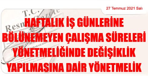 Haftalık İş Günlerine Bölünemeyen Çalışma Süreleri Yönetmeliğinde Değişiklik Yapılmasına Dair Yönetmelik