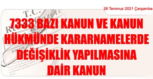 7333 Bazı Kanun ve Kanun Hükmünde Kararnamelerde Değişiklik Yapılmasına Dair Kanun