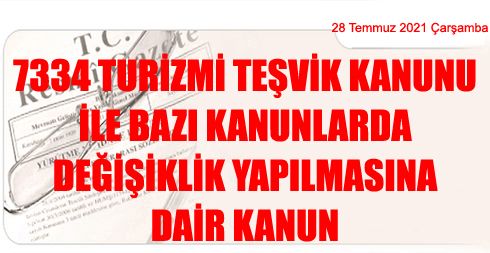 7334 Turizmi Teşvik Kanunu ile Bazı Kanunlarda Değişiklik Yapılmasına Dair Kanun