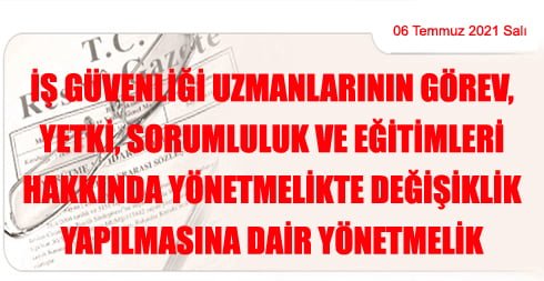 İş Güvenliği Uzmanlarının Görev, Yetki, Sorumluluk ve Eğitimleri Hakkında Yönetmelikte Değişiklik Yapılmasına Dair Yönetmelik