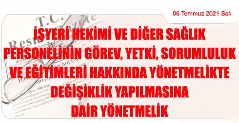 İşyeri Hekimi ve Diğer Sağlık Personelinin Görev, Yetki, Sorumluluk ve Eğitimleri Hakkında Yönetmelikte Değişiklik Yapılmasına Dair Yönetmelik