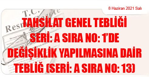 Tahsilat Genel Tebliği Seri: A Sıra No: 1’de Değişiklik Yapılmasına Dair Tebliğ (Seri: A Sıra No: 13)