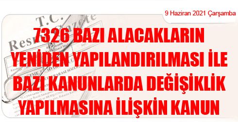 7326 Bazı Alacakların Yeniden Yapılandırılması ile Bazı Kanunlarda Değişiklik Yapılmasına İlişkin Kanun