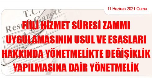 Fiili Hizmet Süresi Zammı Uygulamasının Usul ve Esasları Hakkında Yönetmelikte Değişiklik Yapılmasına Dair Yönetmelik