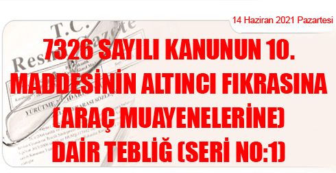7326 Sayılı Kanunun 10. Maddesinin Altıncı Fıkrasına (Araç Muayenelerine) Dair Tebliğ (Seri No:1)