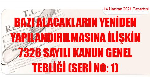 Bazı Alacakların Yeniden Yapılandırılmasına İlişkin 7326 Sayılı Kanun Genel Tebliği (Seri No: 1)