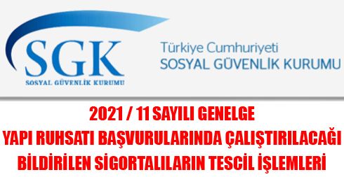 2021 / 11 Sayılı Genelge – Yapı Ruhsatı Başvurularında Çalıştırılacağı Bildirilen Sigortalıların Tescil İşlemleri