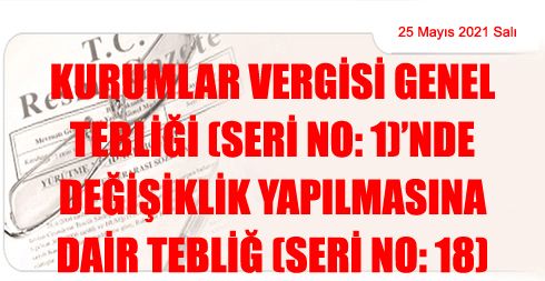 Kurumlar Vergisi Genel Tebliği (Seri No: 1)’nde Değişiklik Yapılmasına Dair Tebliğ (Seri No: 18)