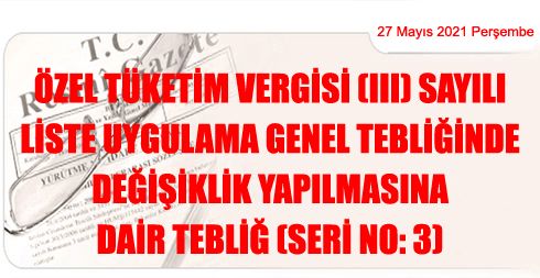 Özel Tüketim Vergisi (III) Sayılı Liste Uygulama Genel Tebliğinde Değişiklik Yapılmasına Dair Tebliğ (Seri No: 3)