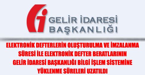 Elektronik Defterlerin Oluşturulma ve İmzalanma Süresi ile Elektronik Defter Beratlarının Gelir İdaresi Başkanlığı Bilgi İşlem Sistemine Yüklenme Süreleri Uzatıldı