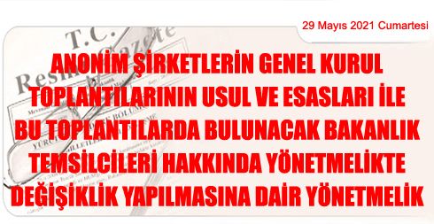 Anonim Şirketlerin Genel Kurul Toplantılarının Usul ve Esasları ile Bu Toplantılarda Bulunacak Bakanlık Temsilcileri Hakkında Yönetmelikte Değişiklik Yapılmasına Dair Yönetmelik