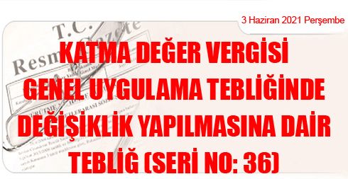 Katma Değer Vergisi Genel Uygulama Tebliğinde Değişiklik Yapılmasına Dair Tebliğ (Seri No: 36)