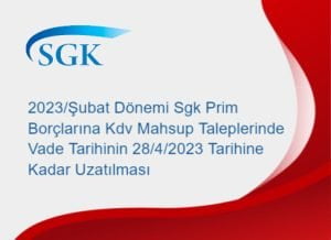 T.C. SOSYAL GÜVENLİK KURUMU BAŞKANLIĞI Sigorta Primleri Genel Müdürlüğü (11 Nisan 2023 tarihinde SGK tarafından yayınlanmıştır) DUYURU 2023/ŞUBAT DÖNEMİ SGK PRİM BORÇLARINA KDV MAHSUP TALEPLERİNDE