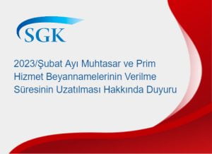 T.C. SOSYAL GÜVENLİK KURUMU BAŞKANLIĞI DUYURU 2023 / Şubat Ayı Muhtasar ve Prim Hizmet Beyannamelerinin Verilme Süresinin Uzatılması Hakkında Duyuru (27 Mart 2023 tarihinde SGK