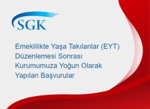 EMEKLİLİKTE YAŞA TAKILANLAR (EYT) DÜZENLEMESİ SONRASI KURUMUMUZA YOĞUN OLARAK YAPILAN BAŞVURULAR (03 Mart 2023 tarihinde SGK tarafından yayınlanmıştır) Kamuoyunda Emeklilikte Yaşa Takılanlar (EYT) olarak bilinen
