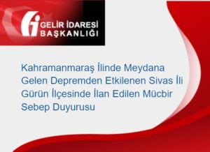 Kahramanmaraş İlinde Meydana Gelen Depremden Etkilenen Sivas İli Gürün İlçesinde İlan Edilen Mücbir Sebep Duyurusu (21 Şubat 2023 tarihinde GİB tarafından yayınlanmıştır) 06.02.2023 tarihinde Kahramanmaraş