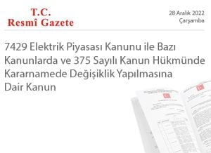 7429 Elektrik Piyasası Kanunu ile Bazı Kanunlarda ve 375 Sayılı Kanun Hükmünde Kararnamede Değişiklik Yapılmasına Dair Kanun