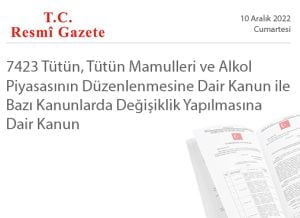 TÜTÜN, TÜTÜN MAMULLERİ VE ALKOL PİYASASININ DÜZENLENMESİNE DAİR KANUN İLE BAZI KANUNLARDA DEĞİŞİKLİK YAPILMASINA DAİR KANUN (10 Aralık 2022 tarihli ve 32039 sayılı Resmi Gazete’