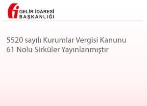 T.C. HAZİNE VE MALİYE BAKANLIĞI Gelir İdaresi Başkanlığı 5520 sayılı Kurumlar Vergisi Kanunu Sirküleri / 61 Konusu : Geçici Vergi Dönemlerinde Yeniden Değerleme Oranı Tarihi