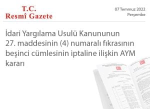 (07 Temmuz 2022 tarihli ve 31889 sayılı Resmi Gazete’ de yayımlanmıştır) İdari Yargılama Usulü Kanununun 27. maddesinin (4) numaralı fıkrasının beşinci cümlesinin iptaline ilişkin AYM