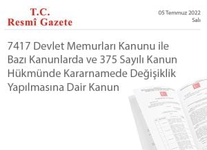 DEVLET MEMURLARI KANUNU İLE BAZI KANUNLARDA VE 375 SAYILI KANUN HÜKMÜNDE KARARNAMEDE DEĞİŞİKLİK YAPILMASINA DAİR KANUN Kanun No. 7417
