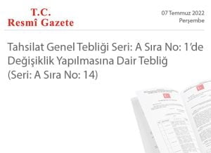 Hazine ve Maliye Bakanlığı (Gelir İdaresi Başkanlığı)’ndan: TAHSİLAT GENEL TEBLİĞİ SERİ: A SIRA NO: 1’DE DEĞİŞİKLİK YAPILMASINA DAİR TEBLİĞ (SERİ: A SIRA NO: 14) (07